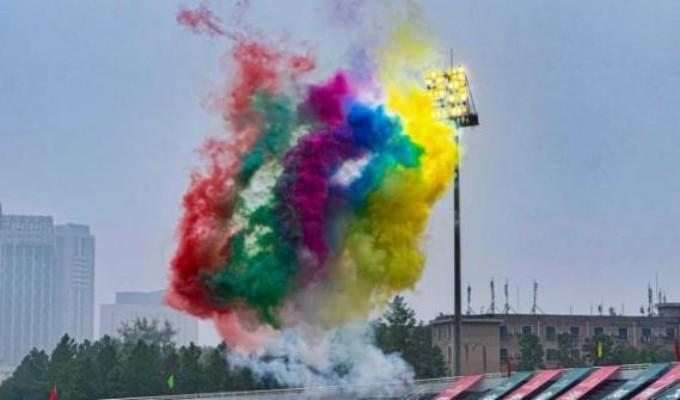 清晨的开幕式上,彩色烟雾划破天际,凤凰造型的表演腾空而起。学院方阵步伐铿锵,自信入场。“光影逐梦,赛场争锋;中韩学子,气势如虹”——激昂的口号回荡全场,尽显青春锋芒。
