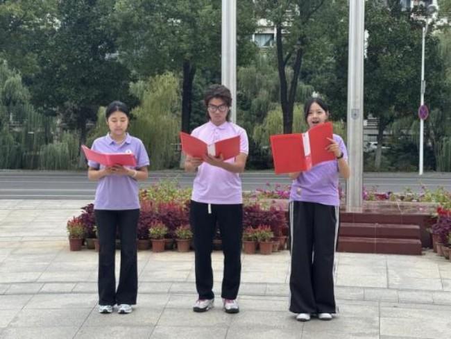 国旗下,2024级学生代表庄重朗诵《民族的丰碑》。"国家有难,匹夫有责"——字字铿锵,句句入心,使抗战精神的磅礴力量深切激荡于每位师生心怀。