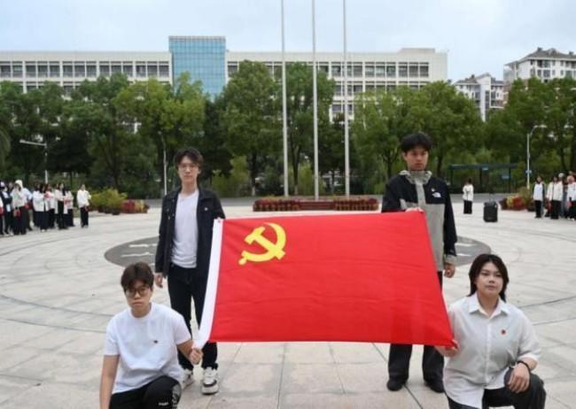 薪火相传,使命在肩。教工党员为新入党学生代表郑重佩戴党员徽章,传承红色基因,勇担时代重任。全体党员面向党旗庄严宣誓,誓言铮铮,响彻广场。