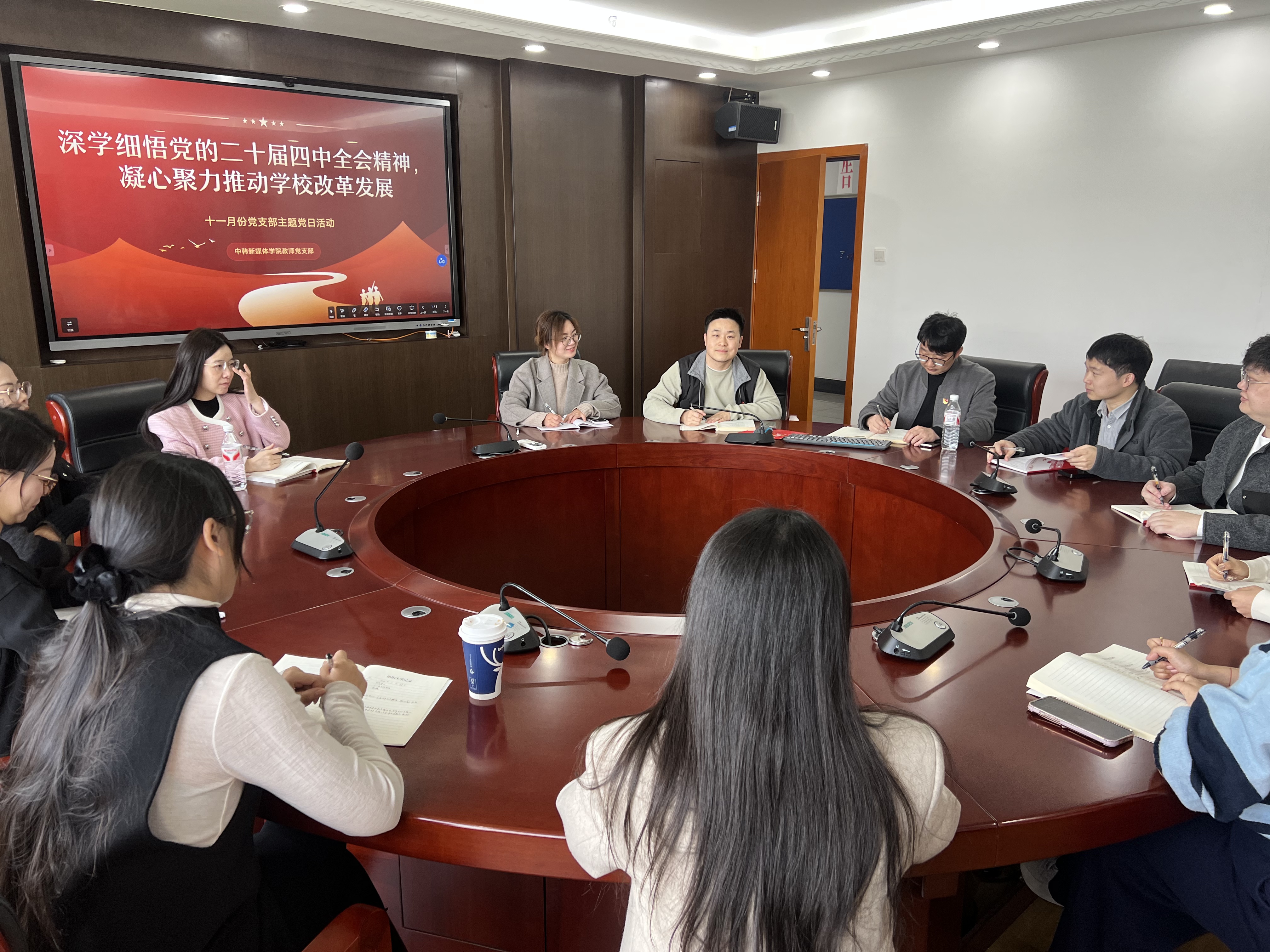 新闻网讯(通讯员 曹翊君)11月27日下午,学院教师党支部在文济楼411会议室举行了十一月主题党日活动,党日活动旨在“深学细悟党的二十届四中全会精神,凝心聚力推动学校改革发展”。本次活动由教师党支部副书记张腾主持,全体教师党员参加。