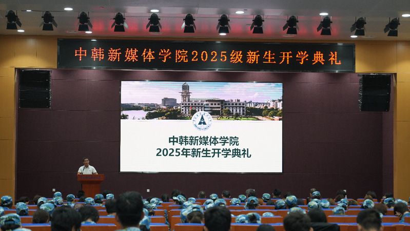 新闻网讯(通讯员 赵子墨)2025年9月22日上午十点半,中韩新媒体学院2025级新生开学典礼在文瀚楼南报告厅隆...
